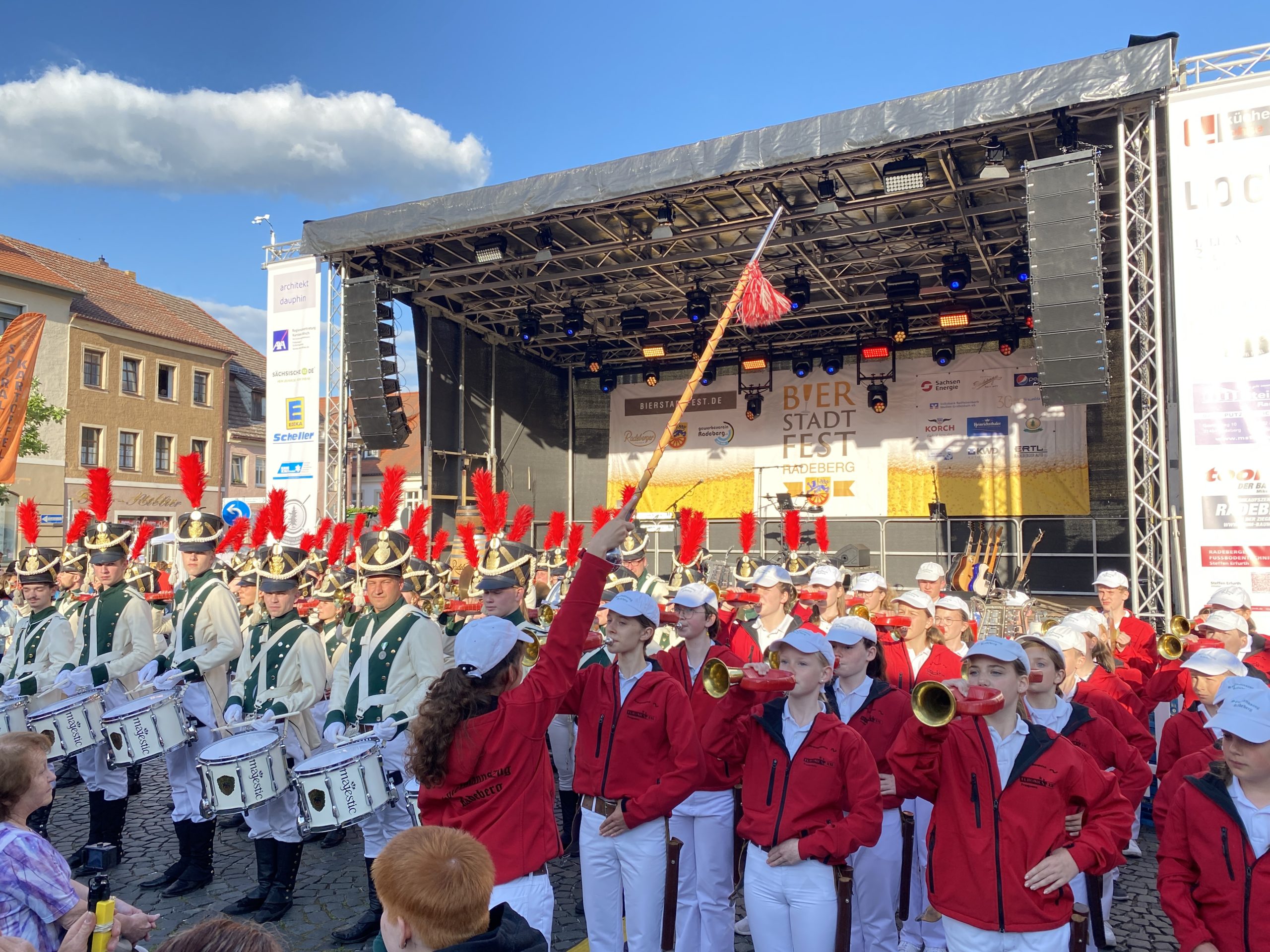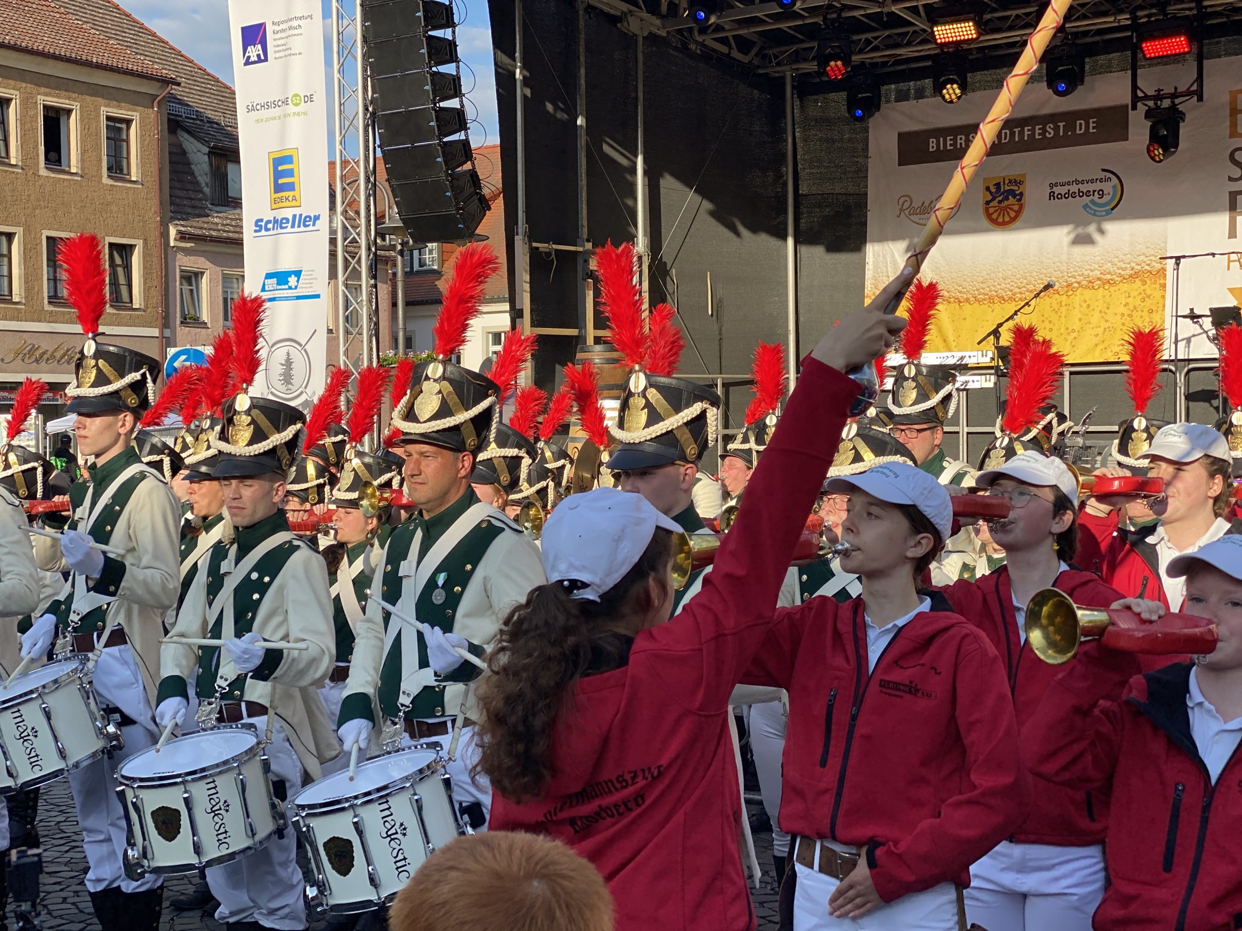 Drei Radeberger Spielmannszüge eröffnen Bierstadtfest mit Sternmarsch
