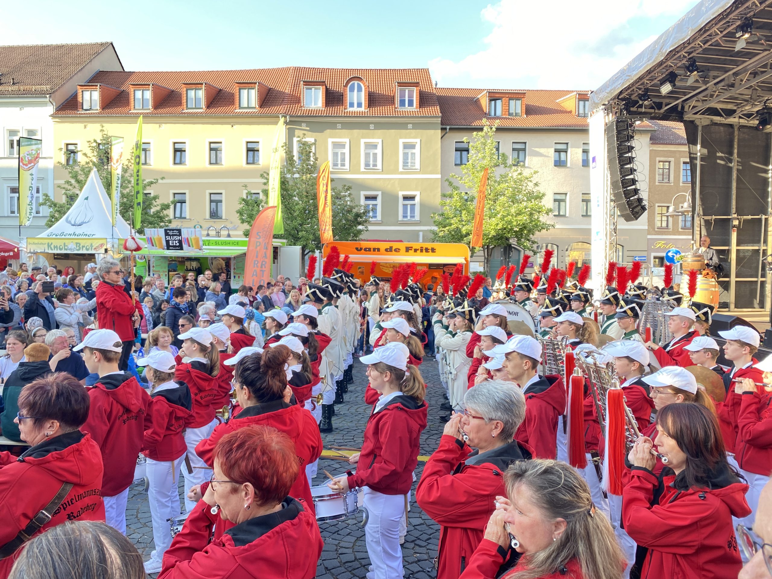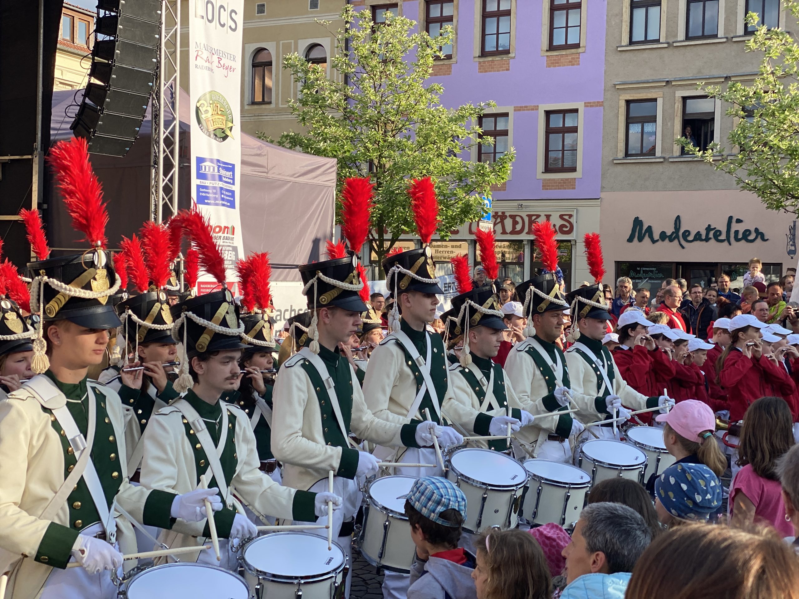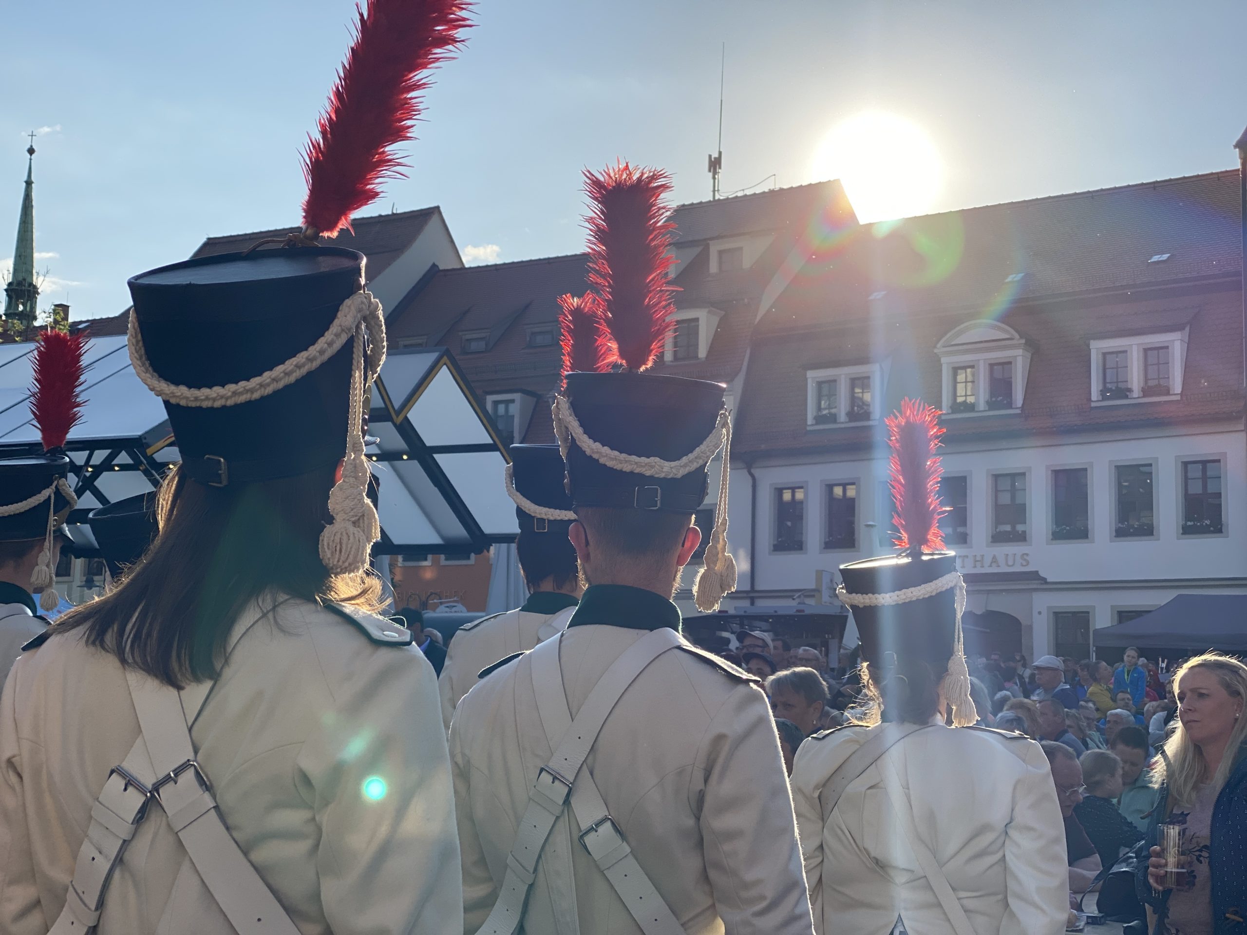 Es ist wieder so weit: Radeberg lädt zum Bierstadtfest. Zur Tradition gehört auch die musikalische Eröffnung am Freitagabend durch den Spielmannszug Radeberg. Drei Formationen nahmen dafür mit einem Sternmarsch, also mehreren Umzügen aus verschiedenen Richtungen zur Hauptbühne, auf dem Marktplatz Aufstellung. Noch bis Sonntagabend findet das Bierstadtfest vor allem auf der Hauptstraße und rund um dem Marktplatz statt.