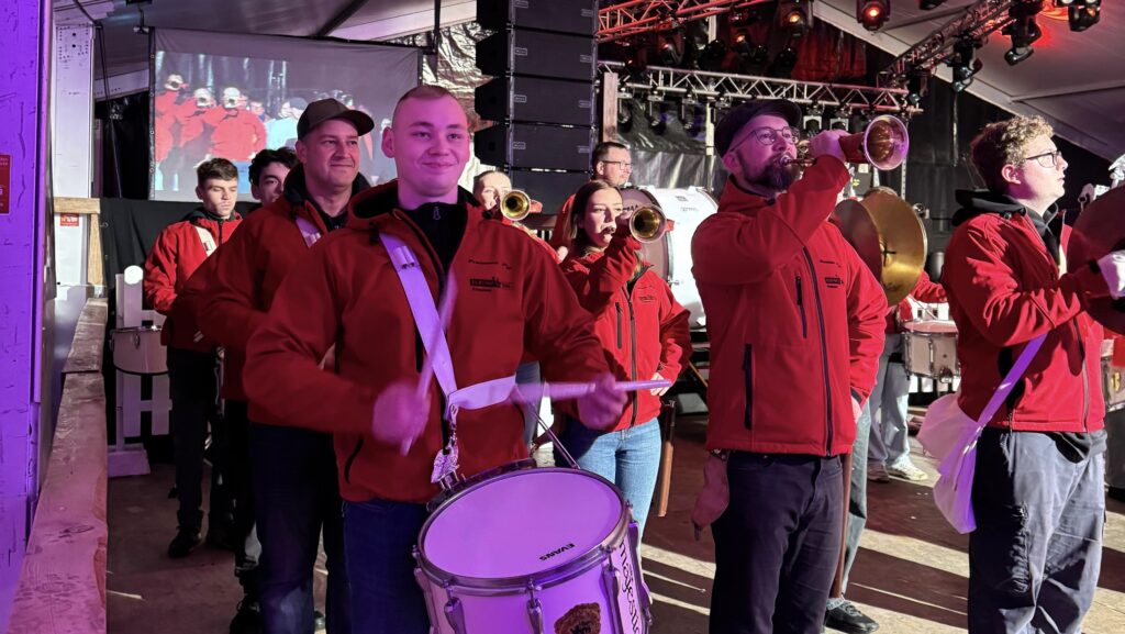 Am Ende wurde es im Festzelt der Fischbacher Kirmes richtig voll und vor allem: laut. Knapp 75 Spielleute aus zwei Vereinen teilten sich die Bühne und gaben alles. Dabei war zumindest für einen der beiden Spielmannszüge an diesem Abend ursprünglich gar kein Auftritt geplant.
