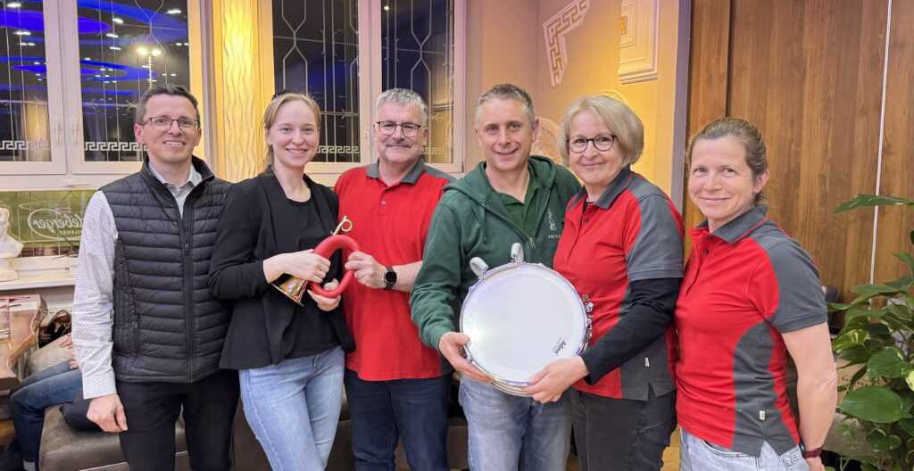 Die Übergabe nahm der Vorstand des Fördervereins bei seiner Mitgliederversammlung vor. Jens Burkon (Abteilungsleiter der Spielleute), Jeanine-Lysette Schwenke (Leiterin des Erwachsenenspielmannszuges) und Michael Kreusche (Leiter des Nachwuchszuges) nahmen die Instrumente entgegen und dankten dem Förderverein für die Unterstützung. Die neuen Instrumente werden dringend benötigt. Der Verein ist in den letzten beiden Jahren gewachsen.